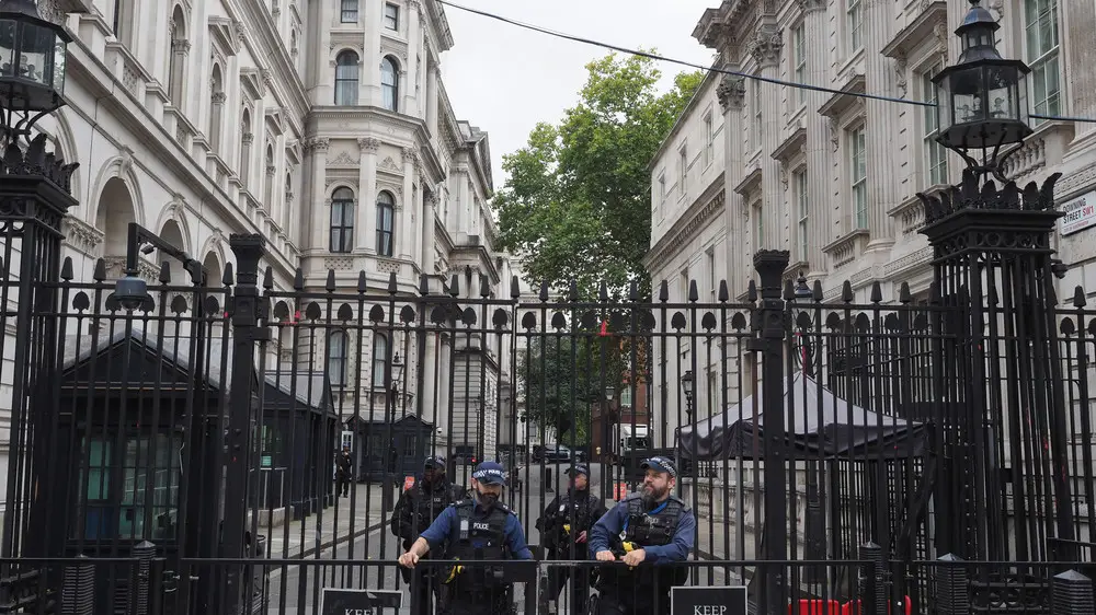 Стармер обратил внимание гостя на тех, кто собрался перед его резиденцией с плакатами в поддержку Зеленского и Украины.