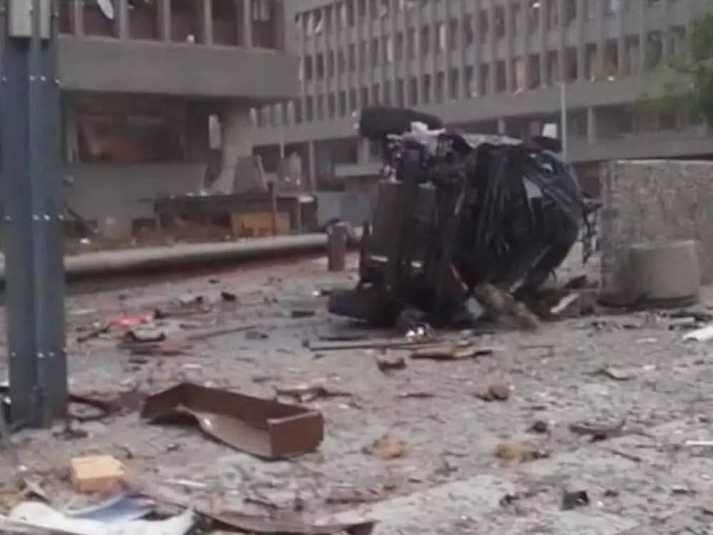 На видеоролике видно, как в зданию правительства Норвегии подъезжает белый фургон, в котором находилась взрывчатка. Затем из автомобиля выходит Брейвик. Через некоторое время на кадрах виден взрыв. Террорист покидает место происшествия на другой автомашине - сером автомобиле марки Fiat.