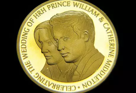 Ранее монетный двор выпустил золотую монету достоинством в пять фунтов, посвященную помолвке пары. Монета была раскритикована британцами. По их мнению, из невесты "сделали старушку, а прическа жениха похожа на шевелюру Элвиса Пресли".