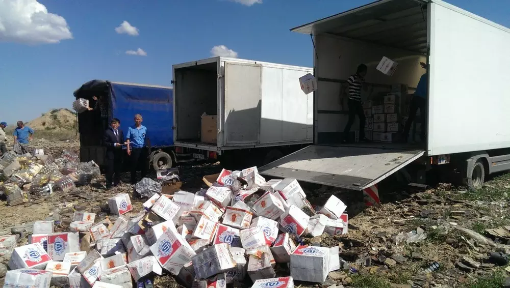 Налоговики изъяли из незаконного оборота 15 812 бутылок контрафактного алкоголя. После продукция была вывезена на полигон и уничтожена специальной техникой. "Такого рода мероприятия стали возможными благодаря совместным усилиям с общественностью города. С 2010 года при налоговом департаменте по Алматы существует "Пункт тестирования алкогольной продукции", задачей которого является реагирование и принятие мер по обращениям горожан по фактам реализации в городе сомнительного алкоголя. Любой желающий, обратившись в пункт тестирования, может получить информацию о подлинности приобретенного продукта с помощью специального прибора, считывающего информацию с акцизной марки", - сообщили в пресс-службе.