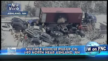 Инцидент произошел на шоссе в штате Нью-Гемпшир. Пострадавших в результате автоаварии нет, однако один автомобиль загорелся после столкновения. Сейчас магистраль закрыта, поврежденные машины эвакуируются. В регионе - снегопад и гололед.