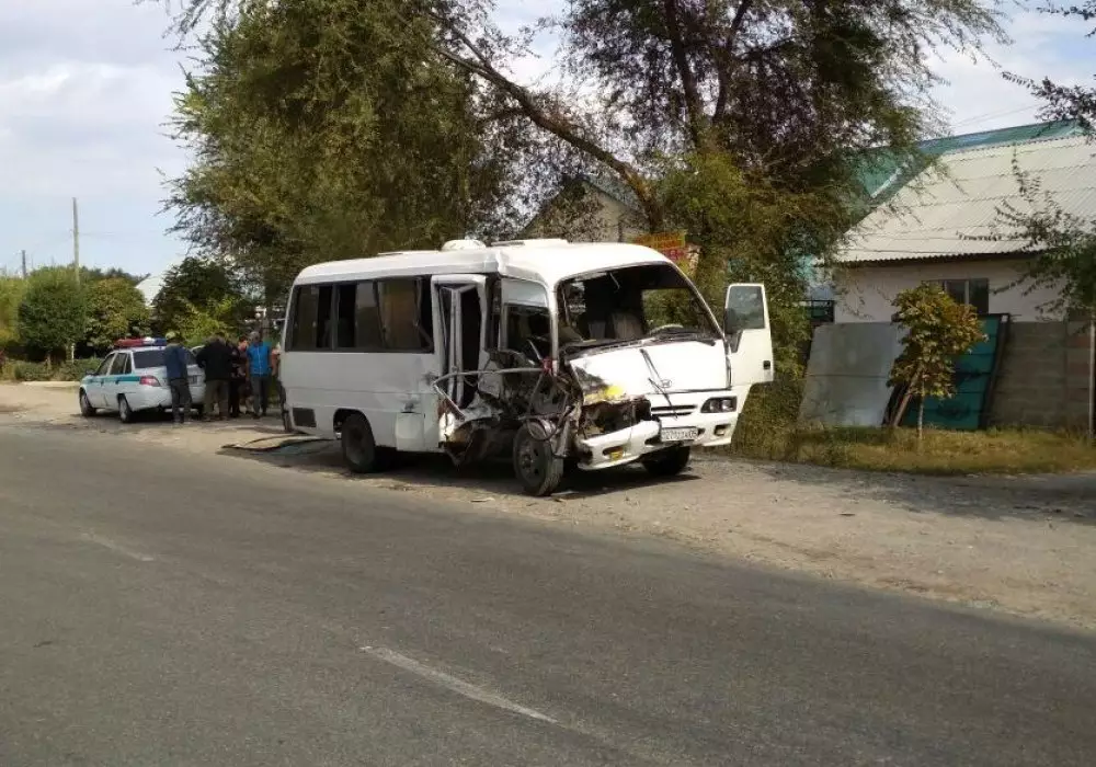 В поселке Кызылту в Алматинской области столкнулись пассажирский автобус №418 и грузовик КрАЗ.