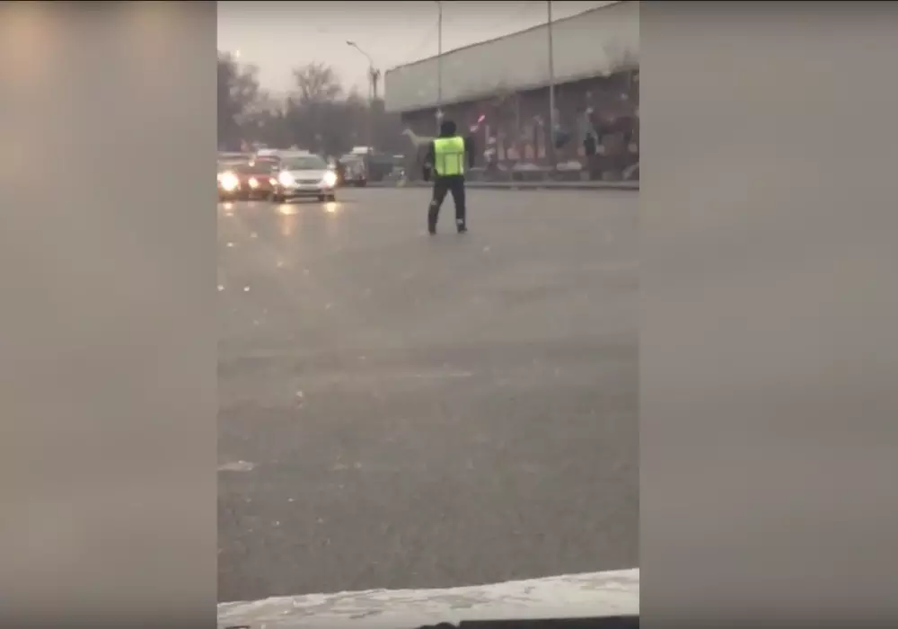 Алматинец утверждает, что стал свидетелем того, как утром 2 марта полицейский регулировал дорожное движение при помощи жезла, передает корреспондент Tengrinews.kz.