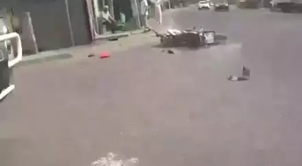 Алматинский байкер запечатлел свой эпичный "полет" после столкновения с авто Кадр видео YouTube.