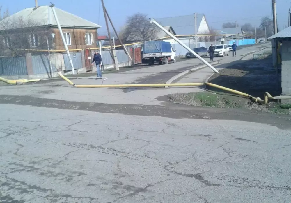 "Грузовик ехал в западном направлении. Заезжал в поселок Ынтымак. У него каким-то образом на ходу борт поднялся и зацепил газовую трубу. По цепочке все трубы повалились. Сейчас люди без газа, без света, без воды сидят", - рассказали местный житель Бауыржан Нуракынов.