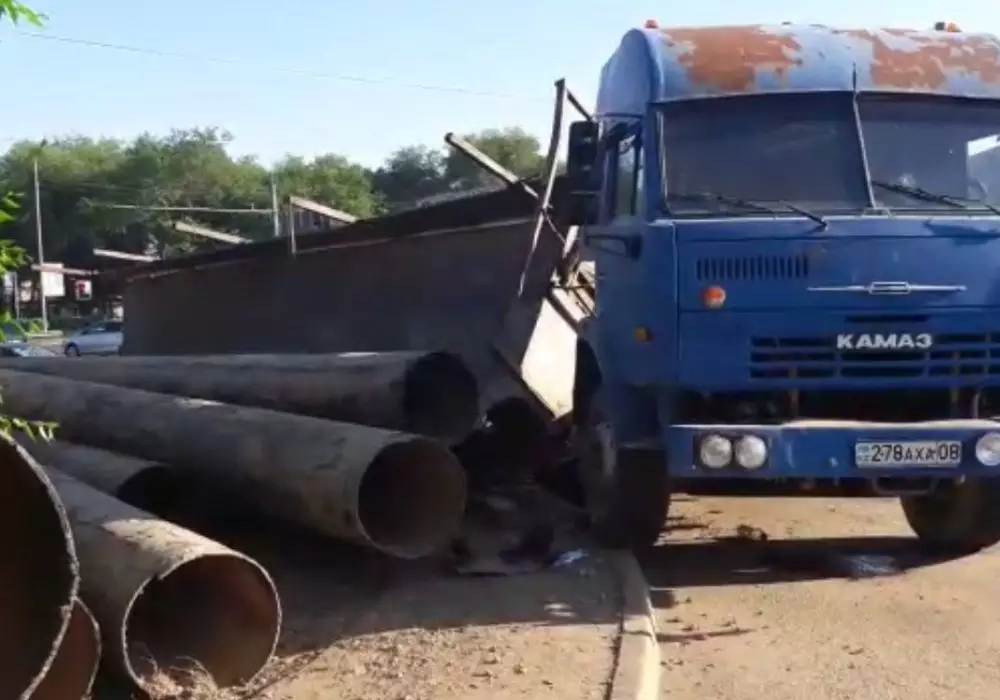 В Алматы девушка чудом избежала смерти, когда на нее упали тяжелые металлические трубы из опрокинувшегося прицепа большегрузного автомобиля, передает корреспондент программы "Территория происшествий" на канале СТВ.