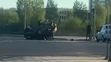 Авто перевернулось после ДТП на перекрестке в Нур-Султане, передает корреспондент Tengrinews.kz со ссылкой на пресс-службу ДП столицы.