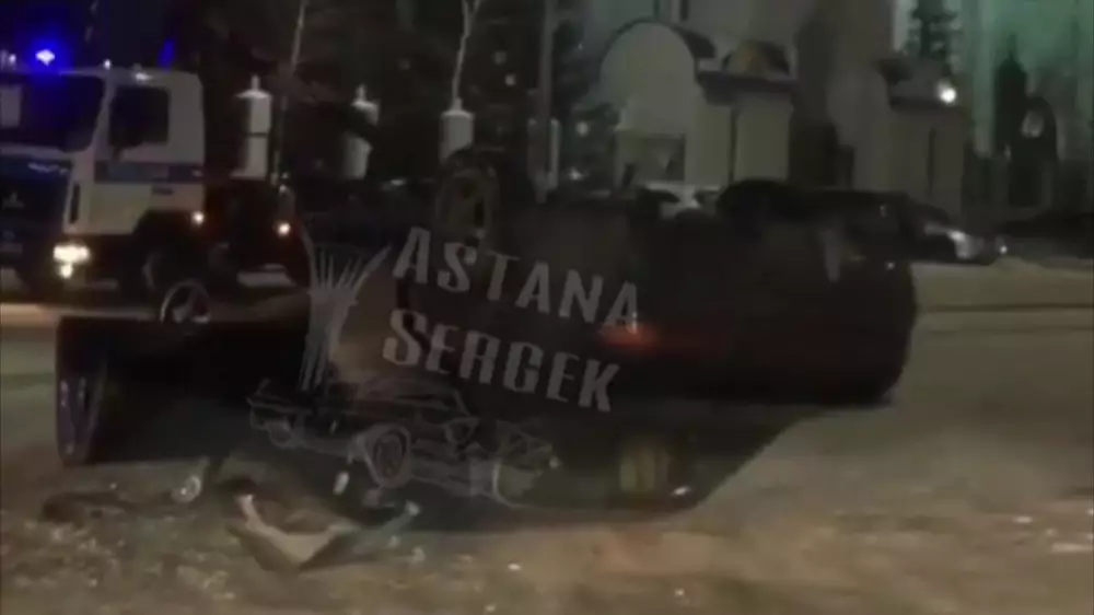 Авто перевернулось в Нур-Султане после столкновения с Land Cruiser Кадр из видео