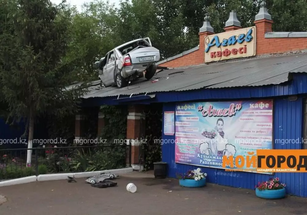 Как сообщили изданию очевидцы, автомобиль уходил от преследования сотрудников УАП ДВД Западно-Казахстанской области. В момент инцидента в здании кафе находились четыре человека. "Мы были в кафе, спали. Вдруг раздался сильный грохот, стекла полетели, пыль. Мы побежали в летник, потому что там девушка спала, мы думали, что ее снесло. Смотрим - нет. Мы все вышли на улицу. Здесь парень сидел. Видимо, он вывалился из машины. Еще с крыши стекал бензин", - рассказали сотрудники кафе.