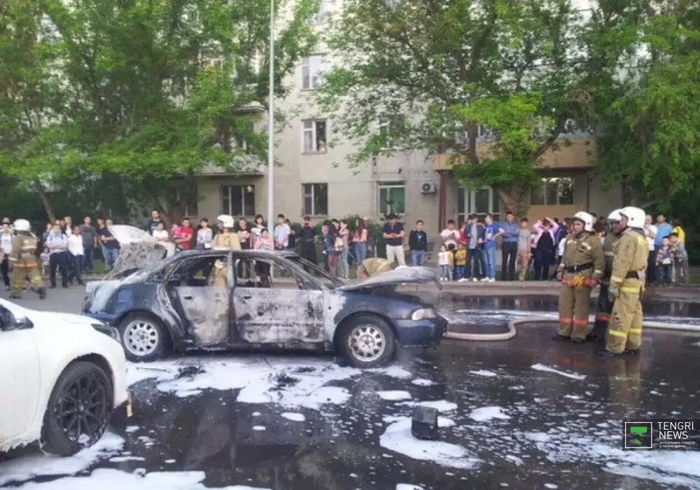 Легковой автомобиль за считанные секунды сгорел в Астане, передает корреспондент Tengrinews.kz, ставший очевидцем произошедшего.