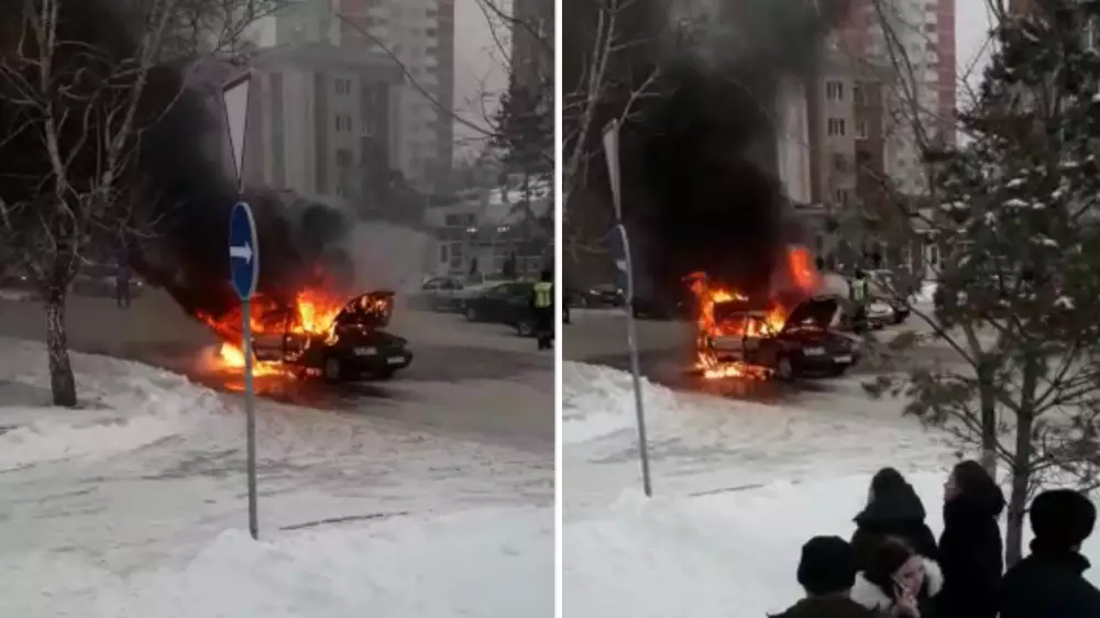 Легковой автомобиль сгорел на проспекте Республики в Нур-Султане, передает корреспондент Tengrinews.kz.