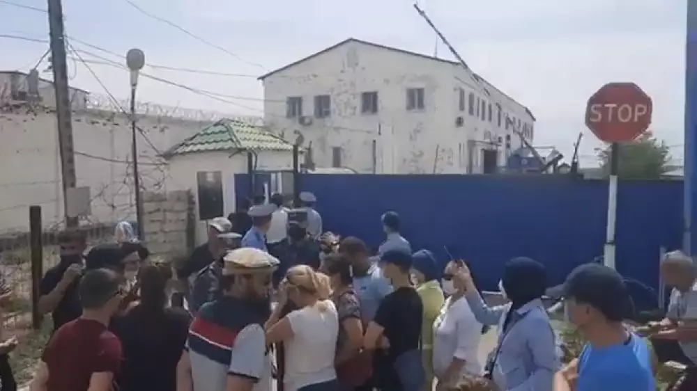 Видео скопления людей возле здания СИЗО Атырау появилось на странице паблика в Instagram million_kz001. Слышно, как собравшиеся люди скандируют: "Давай, давай!"