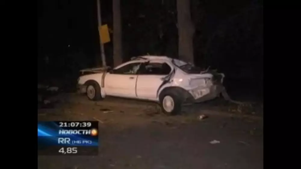 Четверо парней погибли из-за лихой езды в Алматы Четверо парней погибли в "Ниссане". Кадр телеканала КТК