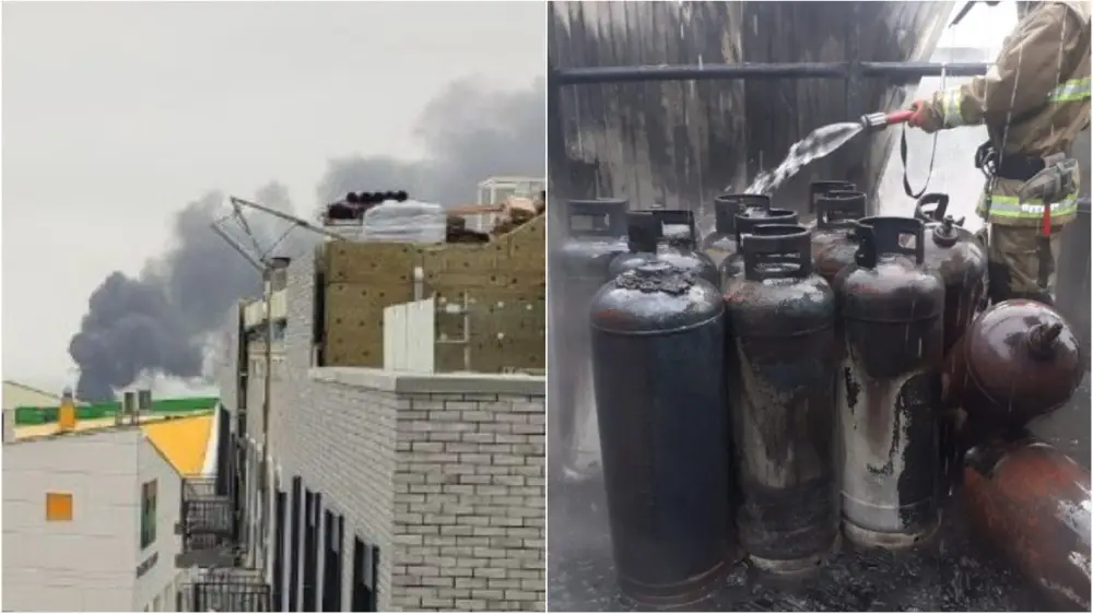 "В ходе разведки и тушения эвакуированы газовые баллоны, тем самым предотвращена угроза взрыва. Принятыми мерами достигнута локализация в течение 31 минуты. Ликвидировано в 13:23. Производится разборка и пролив конструкций. В ликвидации пожара задействовано 32 человека личного состава и 10 единиц техники и службы взаимодействия города", - сообщили в ДЧС.