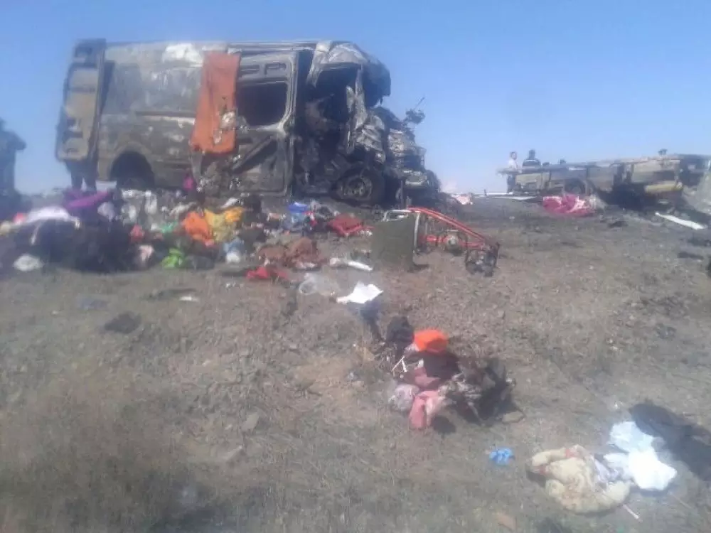 Напомним, в ДТП Жамбылской области столкнулись грузовой автомобиль "ГАЗель-2705" и микроавтобус Mercedes-Benz Sprinter. В последнем транспортном средстве ехали 18 пассажиров, предположительно, все - граждане Кыргызстана. Микроавтобус следовал из Бишкека в Северо-Казахстанскую область. В результате столкновения транспортные средства загорелись, на месте пожара обнаружено 14 тел. Среди погибших на месте оказались водитель автомашины "ГАЗель" и 13 пассажиров микроавтобуса Mercedes-Benz Sprinter (трое из них - дети).