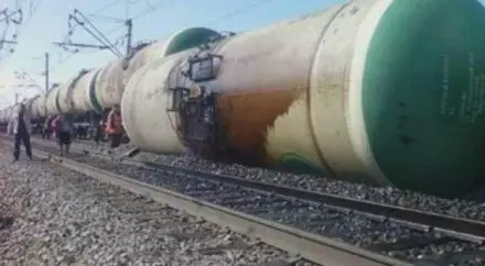 По информации ДЧС, с рельсов сошла одна цистерна с жидким газом пропаном, утечки нет, пути не повреждены.