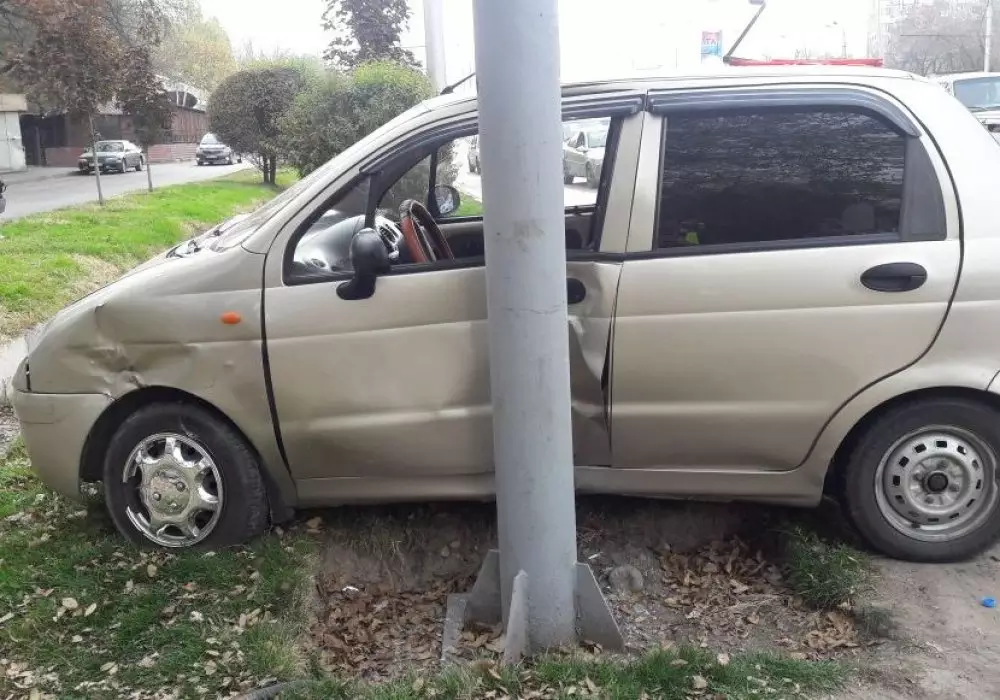 Daewoo Matiz спровоцировал аварию и врезался в столб в Алматы, передает корреспондент программы "Территория происшествий" на телеканале СТВ.
