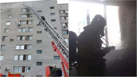 Спасатели развернули автолестницу, чтобы эвакуировать девушку. Однако она запаниковала и выпрыгнула с балкона девятого этажа.