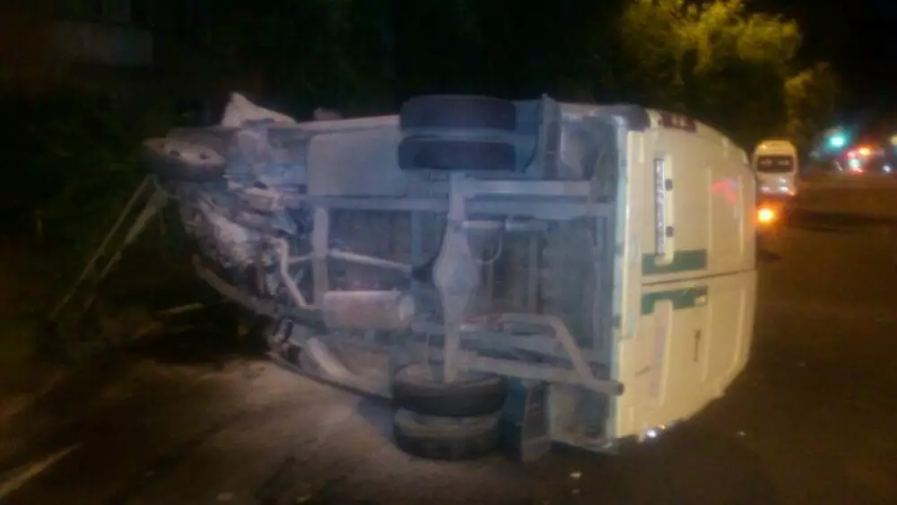Крупное ДТП в Алматы произошло в ночь на 14 мая в 02.45. Автомобиль Honda двигался на большой скорости по улице Кабанбай батыра в западном направлении. На пересечении с улицей Желтоксан иномарка проехала на запрещающий сигнал светофора и столкнулась с инкассаторским фургоном ГАЗ-2105, который от удара перевернулся.