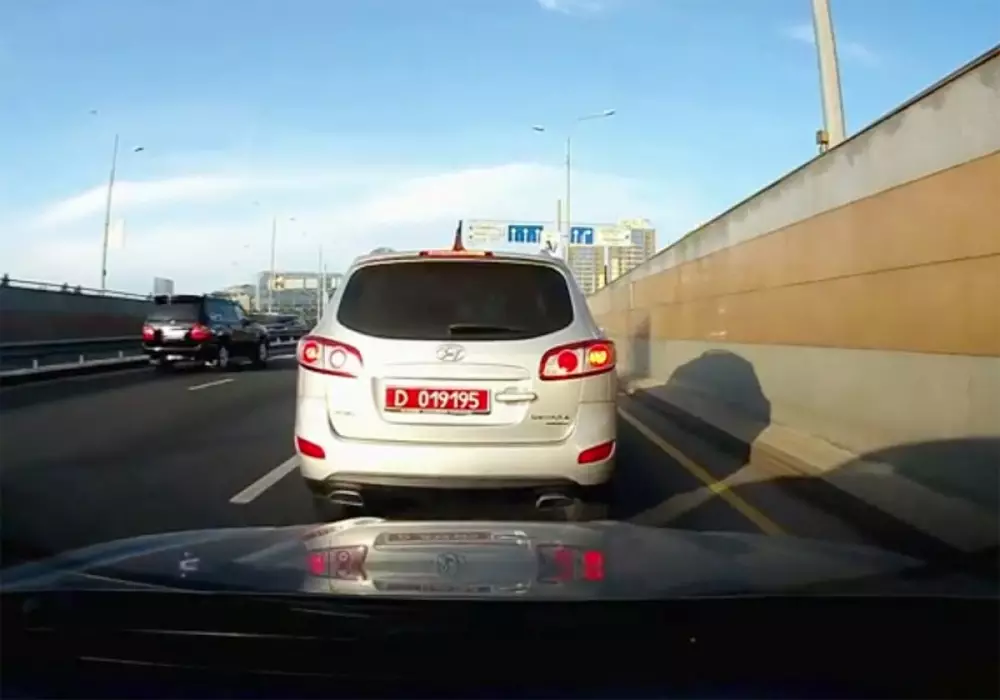 Видеоролик был опубликован на сайте общественного объединения содействия автомобилистам (ОСА). На нем видно, как авто с видеорегистратором движется по проспекту Аль-Фараби в западном направлении по центральной полосе. Подъезжая к улице Фурманова, водителю перегораживает путь автомобиль с дипломатическими номерами Hyundai Santa Fe, водитель которого решил покинуть свою крайнюю правую полосу движения и пересечь сплошную разделительную линию, тем самым едва не спровоцировав ДТП в Алматы. Судя по видеоролику, между водителями возникла перепалка.