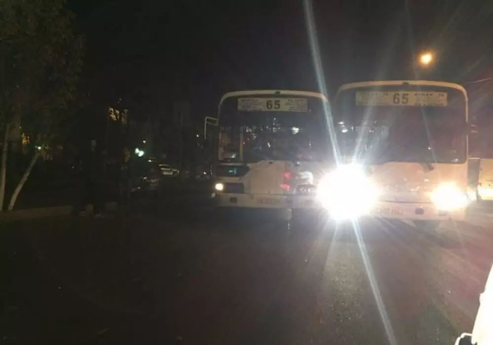 Два автобуса одного маршрута не поделили остановку в Алматы Фото Mixzibit