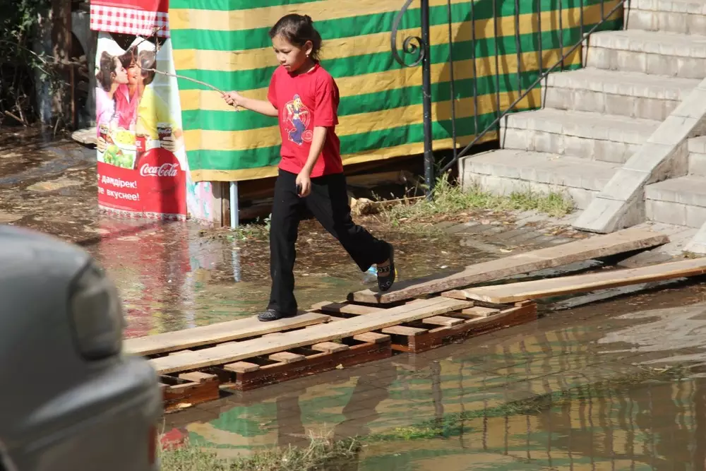 По словам работающих на месте сотрудников ГКП "Алматы Су", прорыв произошел в ночь с 18 на 19 сентября. Площадка перед зданием быстро наполнилась водой, которая затем просочилась в подвал, где хранились старые вещи жильцов и стройматериалы. Уровень воды там составляет около полуметра.