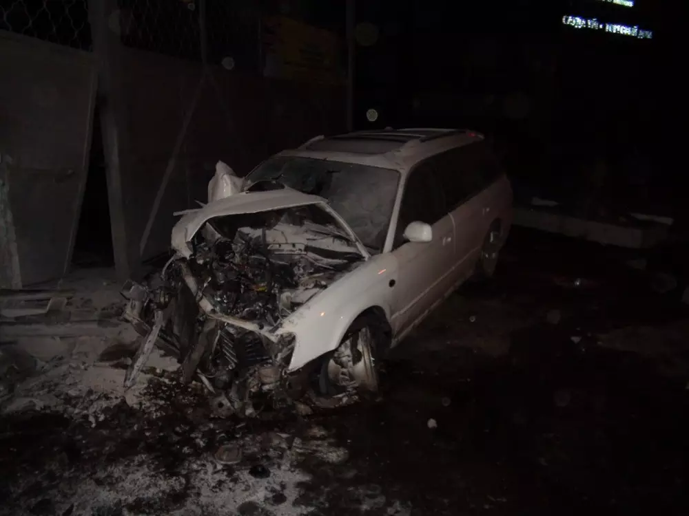 ФОТО: В Алматы Subaru врезался в металлический забор и загорелся