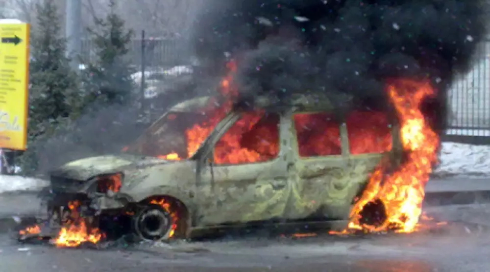 В течение примерно 20 минут, пока на месте находился корреспондент Tengrinews.kz, пожарных машин не было. За это время авто успело сгореть полностью.