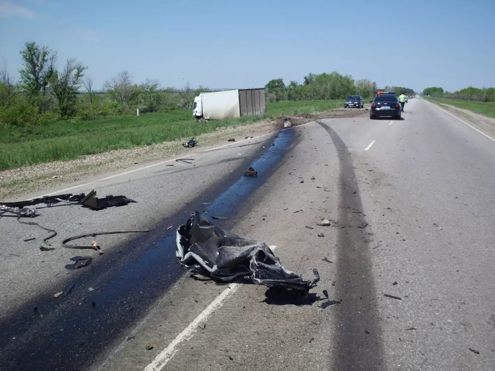 Авария произошла на 11-м километре трассы Костанай - Аулиеколь. За рулем легкового автомобиля был 30-летний водитель. По данным дорожных полицейских, по другой полосе ехала грузовая фура. Водитель "Мерседеса" не справился с управлением и выехал навстречу грузовой машине. В результате столкновения обе машины отбросило в кювет. От "Мерседеса" практически ничего не осталось. По данным дорожной полиции, оба водителя были трезвы.