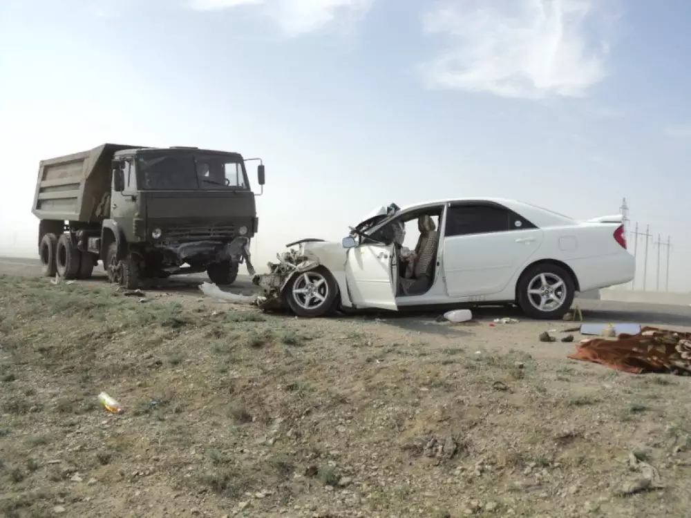 "Водитель 1988 года рождения, управляя автомашиной "Тойота Камри", двигаясь со стороны поселка Жетыбай в направлении города Актау, выехав на полосу встречного движения, совершил столкновение с автомашиной "КАМАЗ-55111", под управлением водителя 1984 года рождения. В результате, пассажиры автомашины "Тойота Камри" - женщина, 1990 года рождения и ее трехмесячный сын от полученных травм скончались на месте происшествия", - сообщила пресс-служба управления.