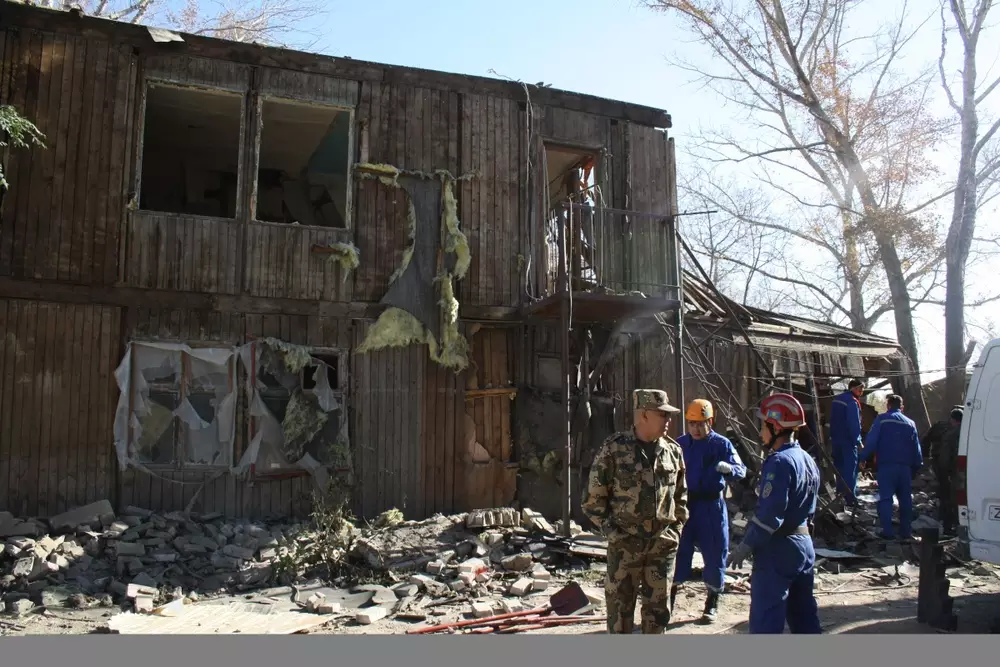 На место происшествия были стянуты пожарные, бригада "скорой помощи", специалисты аэромобильного оперативно-специального отряда, оперативная группа РУВД Астаны. Причины ЧП устанавливаются, по предварительной версии, мужчины занимались разбором дома на дрова.