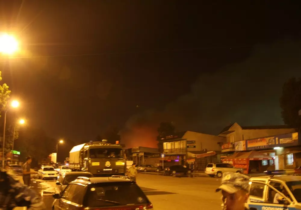 Сегодня, 23 июля в 19.52 по времени Астаны на складах с бытовой техникой алматинского рынка "Салем" произошло возгорание, передает корреспондент Tengrinews.kz. На ликвидацию пожара была брошена 21 единица техники. Локализовать возгорание удалось спустя два часа. По информации Департамента по чрезвычайным ситуациям Алматы, площадь пожара составила 1,5 тысячи квадратных метров. Жертв нет. О причинах пожара не сообщается. Территория вокруг рынка по-прежнему оцеплена сотрудниками внутренних войск. Как отмечают очевидцы, возгорание произошло в тот момент, когда торговые ряды уже были закрыты. По мнению владельцев контейнеров, которые в спешке прибыли на место происшествия, причиной пожара мог стать поджог.