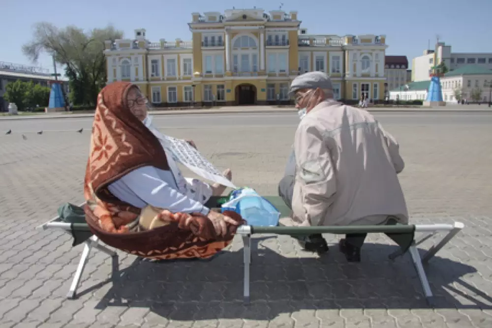 7 мая в 11 часов утра на площади Абая в Уральске объявили голодовку пенсионеры - муж и жена Азбергеновы, пишет "Уральская неделя". Старики расположились на раскладушке на самом солнцепеке. "Сейчас температура воздуха около 30 градусов. Видно, что Азбергеновым очень жарко и они страдают от тахикардии", - сообщил с места событий корреспондент интернет-издания Талгат Умаров. С собой у пожилых супругов только питьевая вода и несколько плакатов с требованиями справедливости и именами чиновников, судей и прокуроров, которые, по их мнению, повинны в нарушении их прав. Вначале акции к голодающим подходили помошник прокурора Кувашев и заместитель акима города Галим Урынгалиев, Они попросили пенсионеров покинуть площадь. Однако Азбергеновы отказались, заявив, что будут сидеть пока к ним не выйдет аким города и аким области. Супруги Азбергеновы, пожалуй, самые известные в Уральске пенсионеры. Они не раз пикетировали акимат области, протестовали на площади. Конфликт с местой властью начался в 2009 году, когда решением районного суда была снесена часть дома, в котором до этого мирно жили пожилые люди. Снесли из-за того, что дом оказался в опасной близости от кафе, которое местный предприниматель построил много позже самого дома. Несколько лет пенсионеры обивали пороги кабинетов различных начальников, прокуроров, судей, добиваясь отмены судебного решения. Плутание в бюрократических джунглях в конце концов вывело пенсионеров на площадь перед акиматом области.