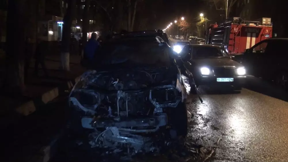 Взрыв произошел минувшим вечером на улице Муратбаева, недалеко от улицы Айтеке би. По словам очевидца, в окно своей квартиры он увидел, как огонь охватил переднюю часть автомобиля Jeep Cherokee, через несколько минут прогремел взрыв. К этому моменту на место ЧП прибыл пожарный расчет.