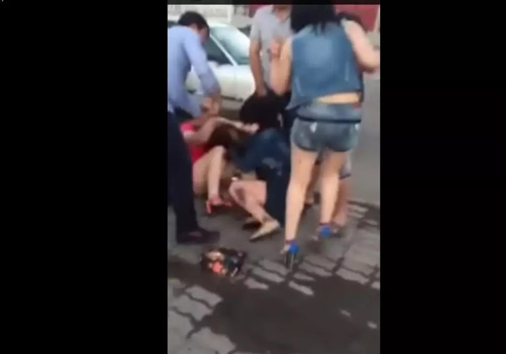 На опубликованных кадрах видно, как две девушки повалили друг друга на асфальт, вцепившись в волосы, парни пытаются их разнять, но безуспешно. "Прибывшими на место происшествия сотрудниками полиции задержаны четыре девушки, которые доставлены в УВД района "Сарыарка". Двое из доставленных - жительницы Акмолинской области, другие - жительницы Астаны и Жамбылской области в возрасте от 23 до 36 лет. Задержанные девушки были в нетрезвом виде. В отношении них приняты меры административного наказания", - рассказали в ДВД о драке в Астане.