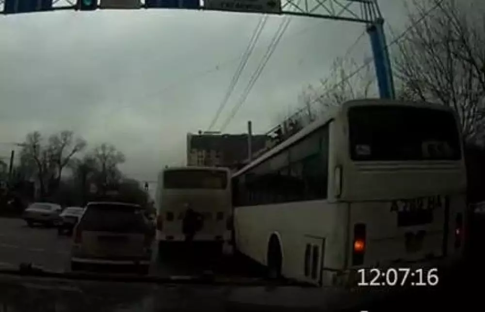 Отметим, что подобные "догонялки" в Алматы происходят почти ежедневно и только чудом удается избежать серьезных аварий. Ниже запись также попала в объектив видеорегистратора. Автобусы снова "выясняли отношения" на проспекте Абая.