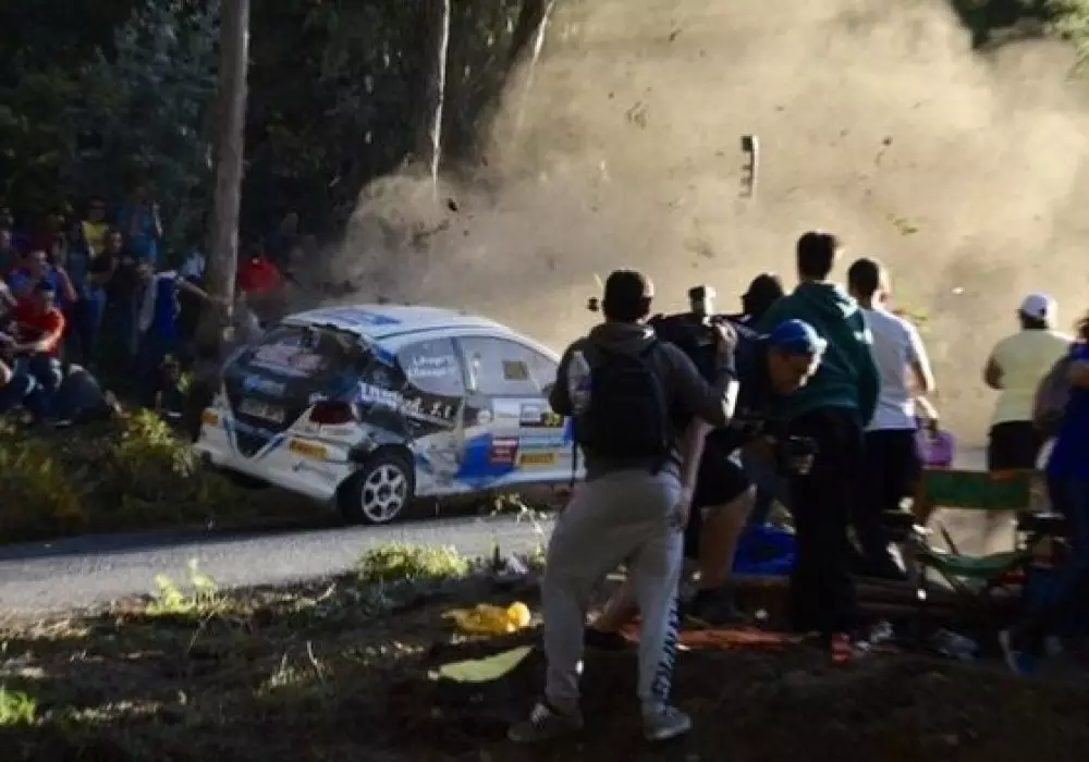 По мнению очевидцев, автомобили "ехали слишком быстро для этого вида дороги, а зрители стояли близко к повороту". Людей сбил автомобиль Peugeot 206 XS. О состоянии водителя информации нет.