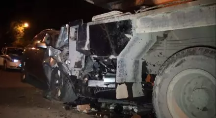 Infiniti влетел в автокран в Алматы Фото ©"Территория происшествий"
