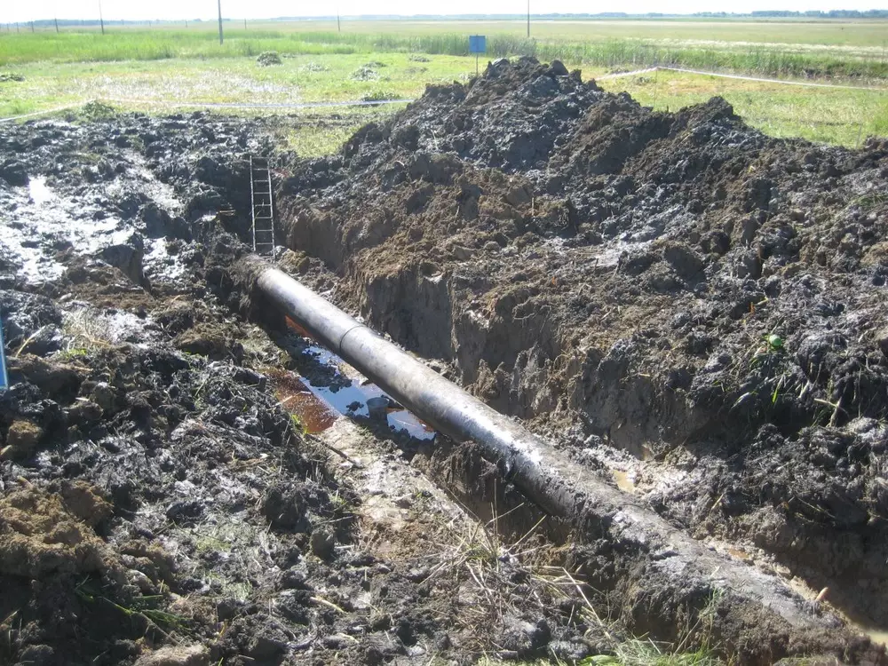 Причиной разлива нефти, по информации ДЧС Северо-Казахстанской области, является свищ, образовавшийся из-за коррозии металла в трубе нефтепровода "Уфа - Омск".