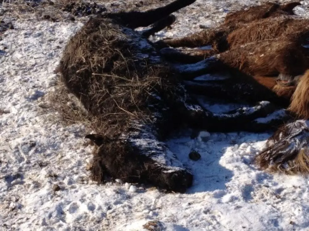По подсчетам фермера в его хозяйстве кроме полсотни лошадей уже погибло 70 голов крупного рогатого скота, а также десятки овец. "Совсем недавно завез скот симментальской породы. Но и они эту зиму не пережили. Дошло до того, что овцы стали дохнуть, потому что кормить нечем. Это настоящий джут. Обещали, что помогут с удешевленными кормами. Два месяца - одни обещания. Сено в дефиците. Его сейчас даже за деньги невозможно купить", - заявил он.