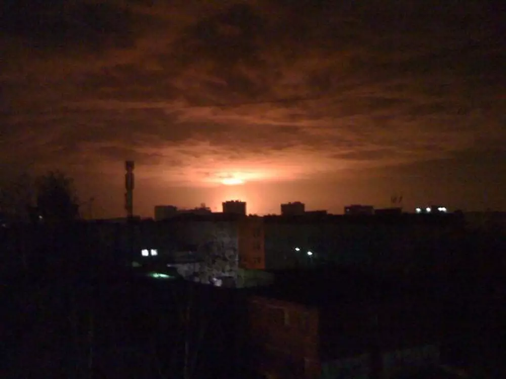 По предварительным данным, на территории арсенала в районе поселка Пугачево сейчас горят 18 хранилищ с артиллерийскими боеприпасами. По словам источника, на арсенале могут находиться от 5 до 10 тысяч вагонов с боеприпасами.