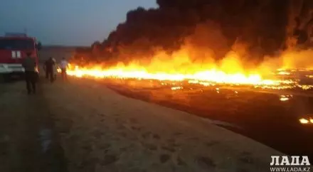 Тушение огня затрудняется расположением очага возгорания: он находится в середине котлована, который расположен в солончаковой местности.