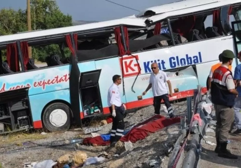 ДТП произошло сегодня на юго-западе Турции в городе Денизли, в 19.30 по времени Астаны. В результате аварии погибли четыре человека, 27 получили ранения. Автобус следовал из Памуккале в Анталию. По уточненным данным РИА Новости, автобус перевозил туристов из России, Казахстана, Литвы и Беларуси. В результате аварии четыре россиянина погибли, еще 20 получили ранения, также пострадали два гражданина Беларуси.