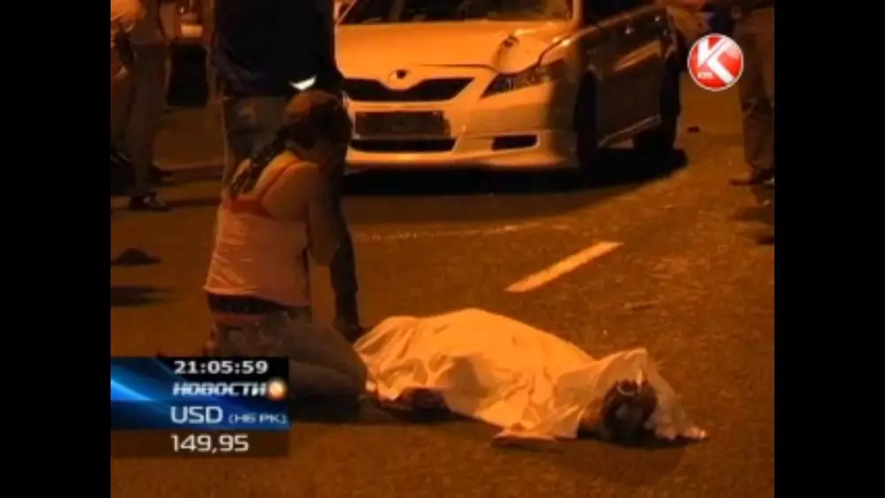 Легковая машина насмерть задавила женщину в Алматы Кадр телеканала КТК с места трагедии
