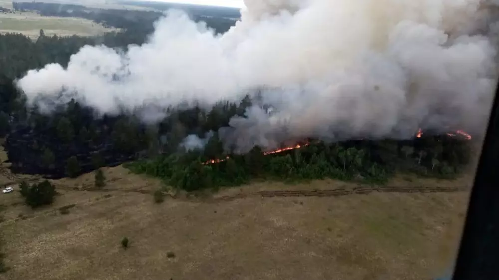 "18 июня в 12.36 на линию "101" района Аккулы Павлодарской области поступило сообщение о горении в лесном фонде "Ертис орманы". Незамедлительно к месту были отправлены силы и средства Департамента по ЧС Павлодарской области. После облета сотрудники "Казавиаохраны" установили, что происходит горение на пяти разрозненных очагах в Баймбетском лесничестве", - сообщил Уали.