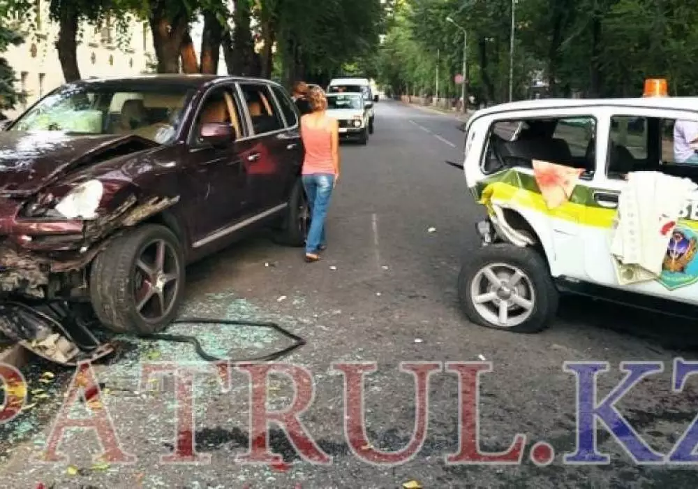 Как сообщается, ДТП произошло на одной из улиц Алматы. По словам очевидцев, водитель Porsche Cayenne отвлекся и врезался в три стоящих перед ним автомобиля, образовав так называемую "гармошку".