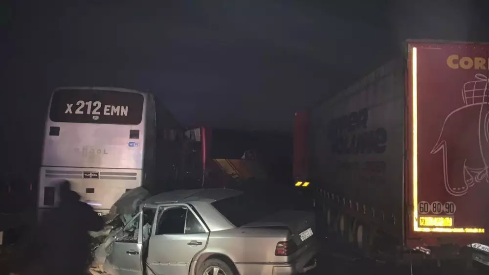Как сообщается в официальном телеграм-канале МВД, авария произошла 7 февраля близ села Унгыртас Жамбылского района, на 82-м километре автодороги Алматы — Бишкек, с участием 8 автомашин.