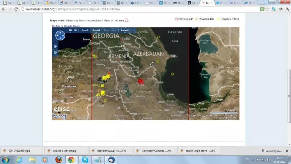 Северо-запад страны в субботу вечером с интервалом в несколько минут потрясло сразу два сильных землетрясения. По данным Европейско-Средиземноморского сейсмологического центра, магнитуда первого составила 6,2, второго - 6,1. Эпицентр подземных толчков располагался в 59 километрах к северо-востоку от Тебриза (город с населением 1,5 миллиона человек) на глубине в 10 километров.