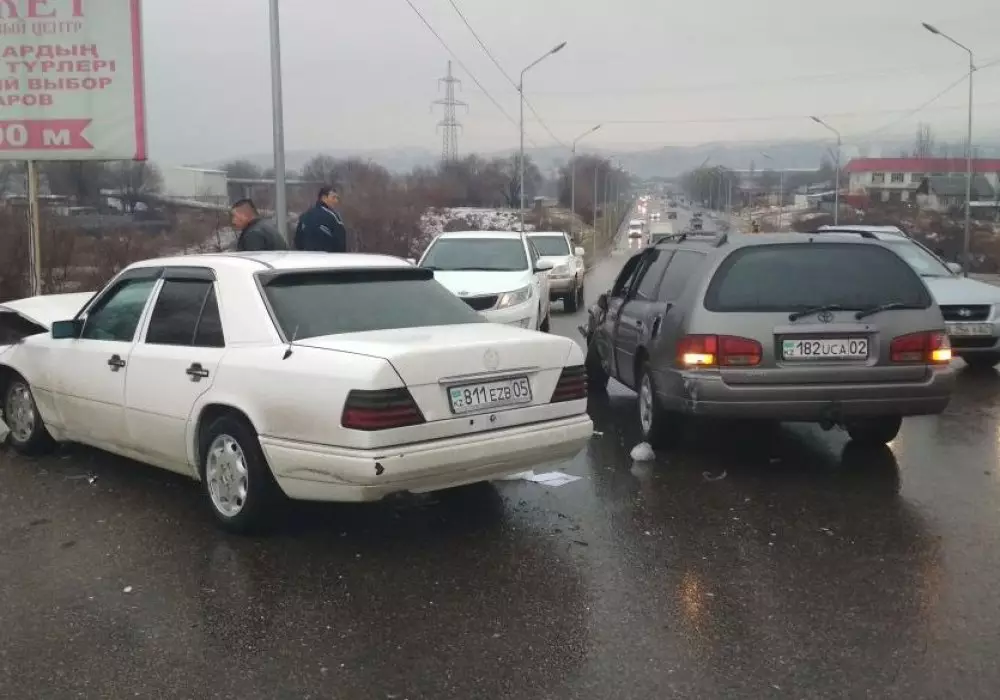 ДТП произошло вдоль БАКа по новой дороге, на повороте на рынок "Ожет". Автомашина Mercedes двигалась в восточном направлении, в этот момент в северном направлении двигалась Toyota Camry, водитель которой хотел сделать поворот на новую дорогу вдоль БАКа. В результате Mercedes ударил Toyota Camry, их откинуло на полосу встречного движения.