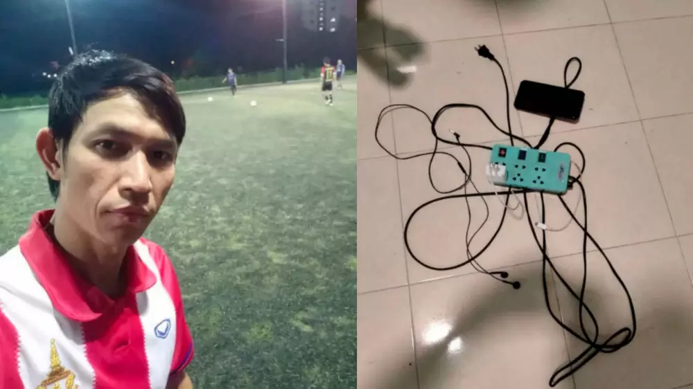 Тело 35-летнего Супакхета Сарабуна обнаружили в его доме в спальне. Из ушей мужчины торчали наушники. Провода от них лежали у него на груди. Наушники были включены в смартфон, который был соединен зарядным устройством с удлинителем, включенным в электросеть.